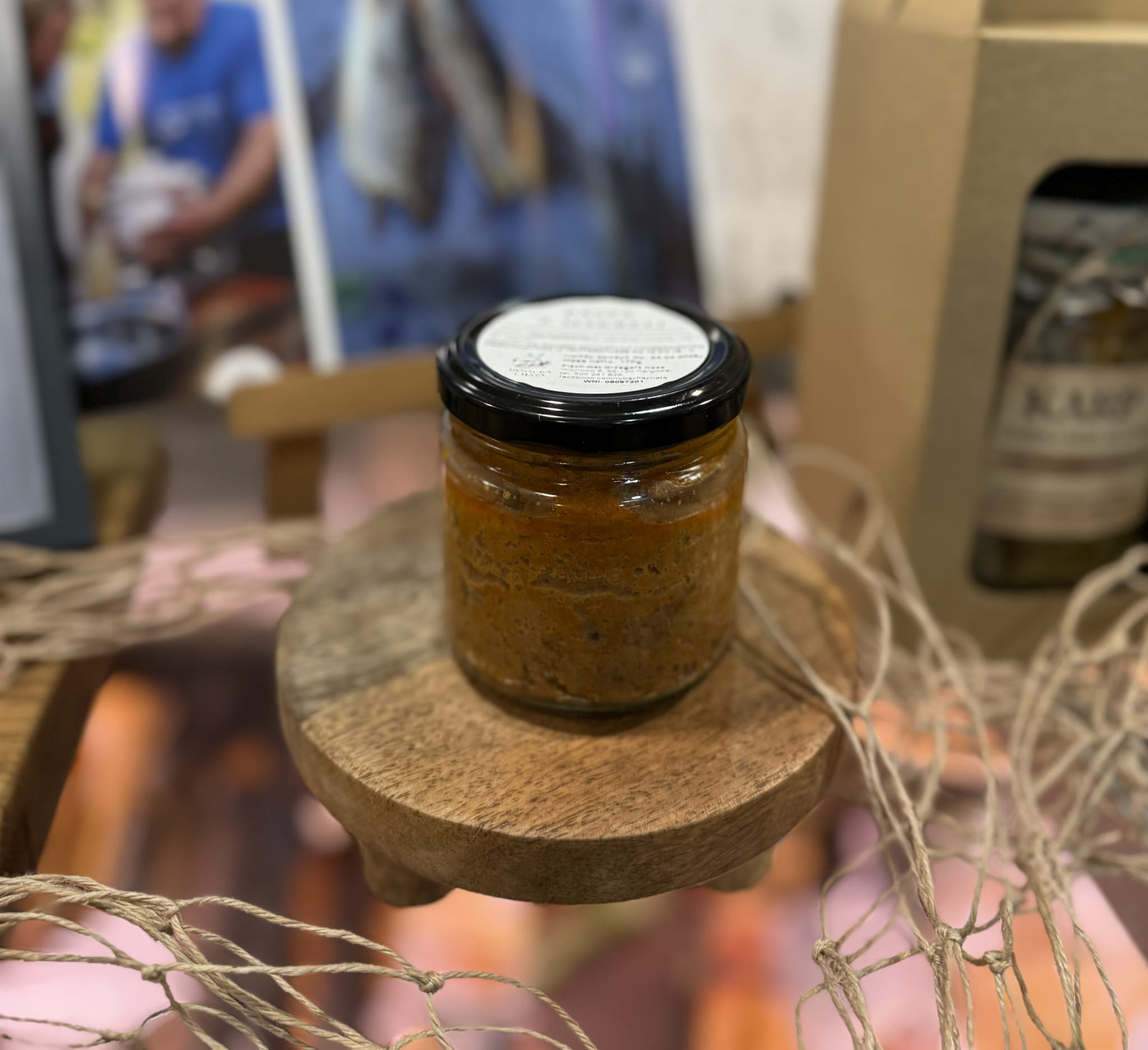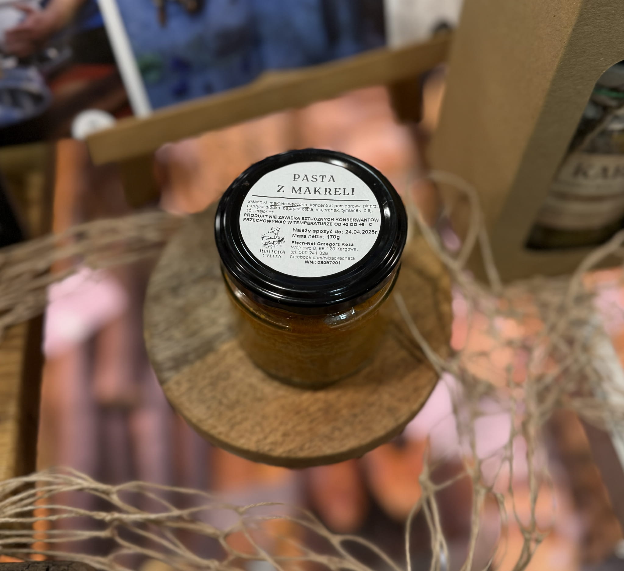 Składniki: ryba wędzona - makrela, koncentrat pomidorowy, pieprz, papryka słodka, papryka ostra, majeranek, tymianek, olej, sól, majonez
